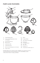 PARTS AND FEATURES 5 6 4 10 7 3 8 11 9 2 1 13 12 15 14 16 1 Bowl Clamping Plate 9 Bowl** 2 Beater Height Adjustment Screw (not shown) 10 Pouring Shield* 3 Speed Control Lever 11 2.8 L Stainless Steel Bowl* 4 Motor Head 12 Flat Beater* 5 Attachment Hub 13 Flex Edge Beater* 6 Attachment Knob 14 Wire Whip 7 Motor Head (locking lever not shown) 15 Dough Hook 8 Beater Shaft 16 Pastry Beater* and Scraper*** * *Included with select models only.