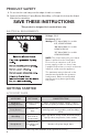 PRODUCT SAFETY 9. Do not let the cord hang over the edge of table or counter. 10. Remove the Beaters, Pastry Beater, Wire Whip, or Dough Hook from the Stand Mixer before washing. SAVE THESE INSTRUCTIONS This product is designed for household use only.