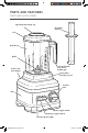 USING THE BLENDER PREPARING THE BLENDER FOR USE Before first use Before using your Blender for the first time, wipe the blender base with a warm damp cloth, then wipe clean with a damp cloth. Dry with a soft cloth. Wash the blender jar, lid, Flex Edge tamper, and ingredient cup in warm, sudsy water (see “Care and cleaning” section). Rinse parts and wipe dry. 1 Before using the Blender, be sure the countertop beneath the Blender and surrounding areas are dry and clean.