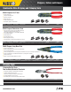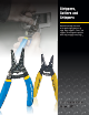 Strippers, Cutters and Crimpers Wire Strippers/ Cutters comfort grip handles Coil spring provides fast self-opening action. Wire looping and bending holes. Double dipped comfort grips. Strong gripping serrated nose for easy bending, shaping, and pulling of wire. Handy closure lock for convenient storage. Screw shearing holes Precision ground stripping holes Wire Strippers/Cutters Additional Features: Easy-to-read markings Precision shear-type blades Cleanly shears 6-32 and 8-32 screws Cat. No.