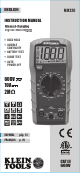 ENGLISH CLEANING Be sure meter is turned off and wipe with a clean, dry lint-free cloth. Do not use abrasive cleaners or solvents. STORAGE Remove the batteries when meter is not in use for a prolonged period of time. Do not expose to high temperatures or humidity. After a period of storage in extreme conditions exceeding the limits mentioned in the General Specifications section, allow the meter to return to normal operating conditions before using. WARRANTY www.kleintools.