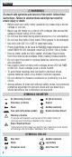 ENGLISH WARNINGS To ensure safe operation and service of the meter, follow these instructions. Failure to observe these warnings can result in severe injury or death. • Before each use verify meter operation by measuring a known voltage or current. • Never use the meter on a circuit with voltages that exceed the category based rating of this meter. • Do not use the meter during electrical storms or in wet weather. • Do not use the meter or test leads if they appear to be damaged.