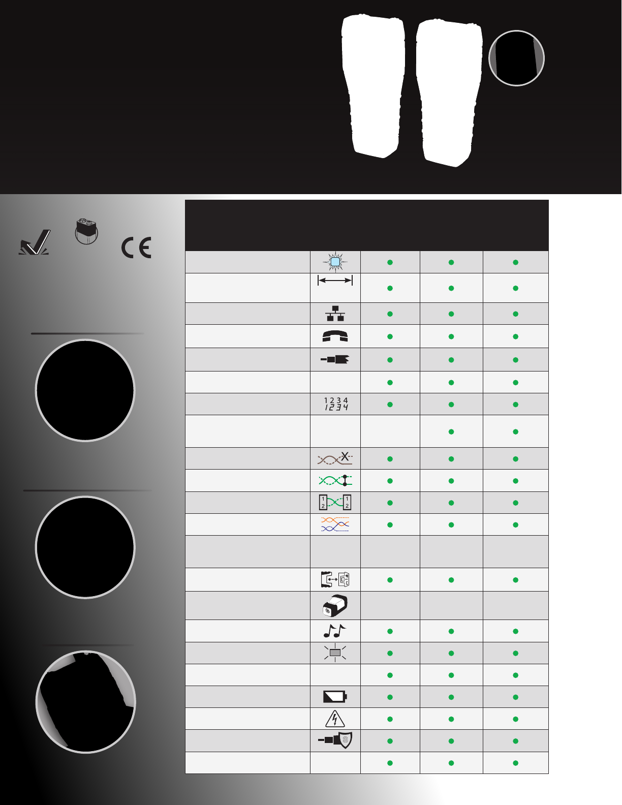 • Prüft Koaxialverbindungen und Kabel für Sprache (RJ11/12),