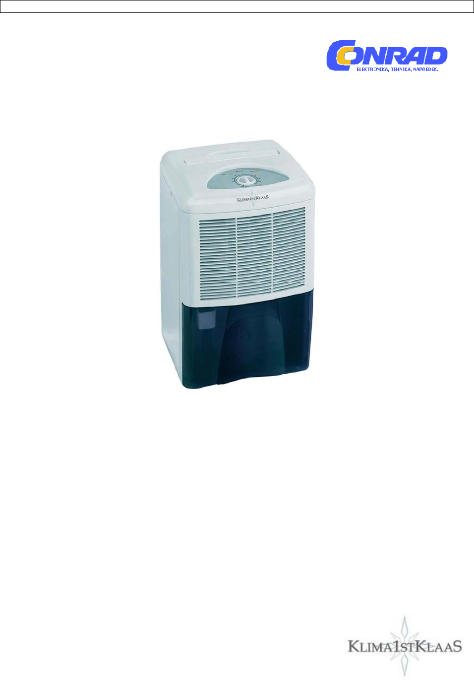 SLO - NAVODILA ZA UPORABO IN MONTAŽO Kat. št.: 55 16 66 www.conrad.si NAVODILA ZA UPORABO Razvlažilnik zraka Klima1stKlaas 5006, 10 L Kataloška št.