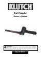 Thank you very much for choosing a Klutch product! For future reference, please complete the owner’s record below: Serial Number/Lot Date Code: ________________________________ Purchase Date: ____________________________________________ Save the receipt, warranty, and this manual. It is important that you read the entire manual to become familiar with this product before you begin using it. This Belt Sander is designed for certain applications only.