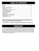 Sección Garantía Instrucciones de seguridad y advertencia: Instrucciones del aislamiento doble... Cordón de extensión. J Desempaquetado y contenido de la caj Instrucciones de ensamblaje general. Recogido de materiales secos Recogido de guidos con la aspiradora Mantenimiento [instalación y limpieza del filtro de tela Instalación y limpieza del filtro de esponja Diagnostico Partes de repuesto y diagrama Gracias por comprar esta aspiradora mojado/seco de vacmaster®.