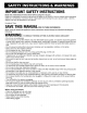 SAFETY INSTRUCTIONS & WARNINGS IMPORTANT SAFETY INSTRUCTIONS Read and understand all instructions before using this vacuum Read and understand this owner's manual and all [labels on the Wet/Dry Vacuum cleaner before operating. Safety is a combination of common sense, staying alert and knowing how your vacuum works. Use this Wet/Dry Vac only as described in this manual. Household Type SAVE TH IS MANUAL FOR FUTURE REFERENCE.