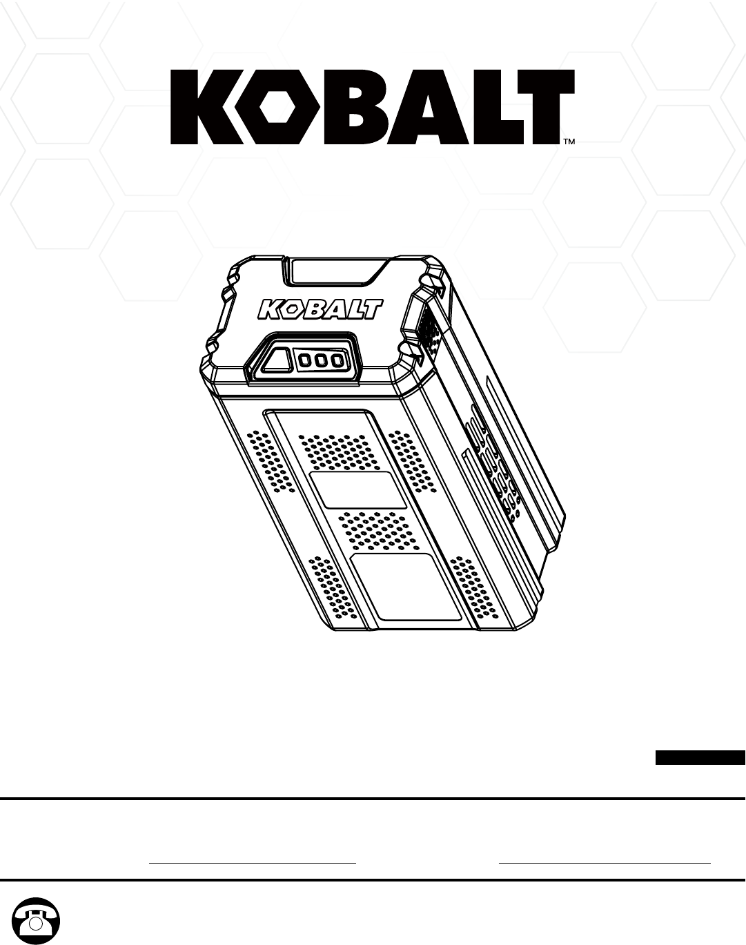 ARTÍCULO #1191151/1191152 BATERÍA DE IONES LITIO DE 80 V (MÁX.) MODELO #KB 580-06/KB 680-06 ADJUNTE SU RECIBO AQUÍ Número de serie Fecha de compra ¿Tiene preguntas, problemas, piezas faltantes? Antes de regresar a la tienda, llame a nuestro Departamento de Servicio al Cliente al 1-888-3KOBALT (1-888-356-2258) de lunes a viernes, de 8 a.m. a 8 p.m., hora estándar del Este.