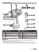 INSTRUCCIONES DE FUNCIONAMIENTO 3. Caja de dos velocidades El taladro/destornillador cuenta con una caja de engranaje de dos velocidades diseñada para taladrar o atornillar a dos rangos diferentes de velocidad variable. En la parte superior del taladro/destornillador, se encuentra el selector de engranaje (C) que le permite seleccionar un rango de velocidad 1 (bajo) o un rango de velocidad 2 (alto). 3 C a.