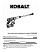 ITEM #2735850/ 2737923 40V CORDLESS HANDHELD POWER CLEANER MODEL #KPC 2040-06/ KPC 7040-06 KOBALT and K & Design are trademarks or registered trademarks of LF, LLC. All rights reserved. Español p. 16 ATTACH YOUR RECEIPT HERE Serial Number Purchase Date Questions, problems, missing parts? Before returning to your retailer, call our customer service department at 1-888-3KOBALT (1-888-356-2258), 8 a.m. - 8 p.m., EST, Monday - Sunday. You could also contact us at partsplus@lowes.com or visit www.