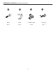 PACKAGE CONTENTS L K D H N A E B G C F S J I R M Q P O PART DESCRIPTION A Upper chute control rod T QUANTITY 1 PART DESCRIPTION K Bail lever QUANTITY 1 B Lower chute control rod 1 L Safety switch button 1 C Middle handle 1 M LED lights 1 D Upper handle 1 N Trigger 1 E Chute deflector 1 O Left side cover 1 F Lower handle 1 P Large pulley 1 G Discharge chute 1 Q Drive Belt 1 H Handle of the chute control rod 1 R Small pulley 1 I Battery compartment co