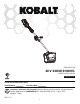 ITEM #0751750 40 V SNOW SHOVEL MODEL #KSS 1240-06 Español p. 18 ATTACH YOUR RECEIPT HERE Serial Number Purchase Date Questions, problems, missing parts? Before returning to your retailer, call our customer service department at 1-888-3KOBALT (1-888-356-2258), 8 a.m. - 8 p.m., EST, Monday - Friday.