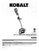 ITEM #0533630 80 V CORDLESS SNOW SHOVEL MODEL #KSS 2080A-06 Español p. 19 ATTACH YOUR RECEIPT HERE Serial Number Purchase Date Questions, problems, missing parts? Before returning to your retailer, call our customer service department at 1-888-3KOBALT (1-888-356-2258), 8 a.m. - 8 p.m., EST, Monday - Friday.