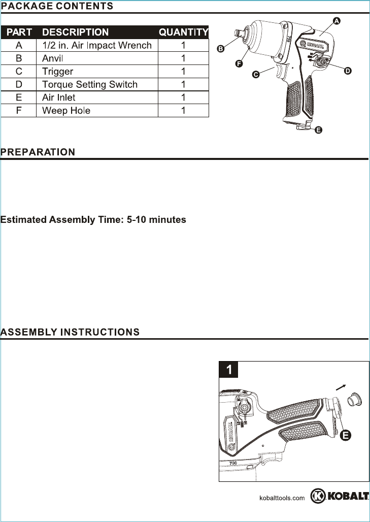 Before assembling this tool, make sure all parts are present. Compare parts with
