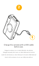 2 Charge the camera with a USB cable before use. Cargue la cámara con un cable USB antes de utilizarla. Chargez l'appareil photo avec un câble USB avant de l'utiliser. Laden Sie die Kamera vor dem Gebrauch mit einem USB-Kabel auf. Carichi la fotocamera con un cavo USB prima dell'uso.