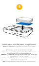4 Insert paper into the paper compartment. NOTE: Blue sheet should be at the bottom of the paper stack facing down. Introduzca el papel en el compartimento del papel. NOTA: La hoja azul debe estar en la parte inferior de la pila de papel hacia abajo. REMARQUE: Insérez le papier dans le compartiment à papier. La feuille bleue doit se trouver au bas de la pile de papier, face vers le bas. Legen Sie Papier in das Papierfach ein.