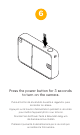 6 Press the power button for 3 seconds to turn on the camera. Pulse el botón de encendido durante 3 segundos para encender la cámara. Appuyez sur le bouton d'alimentation pendant 3 secondes pour mettre l'appareil photo sous tension. Drücken Sie die Power-Taste 3 Sekunden lang, um die Kamera einzuschalten. Premere il pulsante di alimentazione per 3 secondi per accendere la fotocamera.