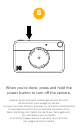 8 When you’re done, press and hold the power button to turn off the camera. Cuando haya terminado, mantenga pulsado el botón de encendido para apagar la cámara. Lorsque vous avez terminé, appuyez sur le bouton d'alimentation et maintenez-le enfoncé pour éteindre l'appareil photo. Wenn Sie fertig sind, halten Sie die Power-Taste gedrückt, um die Kamera auszuschalten. Al termine, tenga premuto il pulsante di accensione per spegnere la fotocamera.