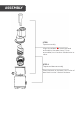 CLEANING & CARE 1. Remove the juicing screw and strainer from the juicing bowl. Clean with provided brush. Note: • Immediately clean the juicer after each use. If remaining residue in the juicer dries up, it can make disassembling and clean-up difficult. The excess build-up can cause poor performance in future uses. • For easy disassembly, place the topset in the sink and run water through from the top of the topset.