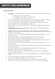SAFETY AND WARNINGS Usage Limitations • • • • • • • • • • • • • • • • • • • This product is designed for floor cleaning in a home environment only and cannot be used: o Outdoors, such as open terraces. o On irregular or soft surfaces, such as a sofa. o Commercial or industrial environments. Do not use the product in elevated areas such as a penthouse, an open terrace or furniture top that do not have a protective fence at the robot's height.