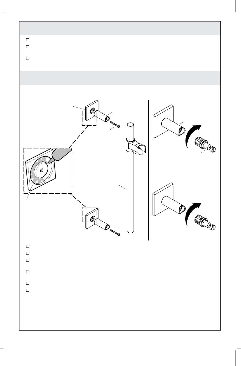Secure an escutcheon and post to the wall with a screw. Loosely tighten the screw.