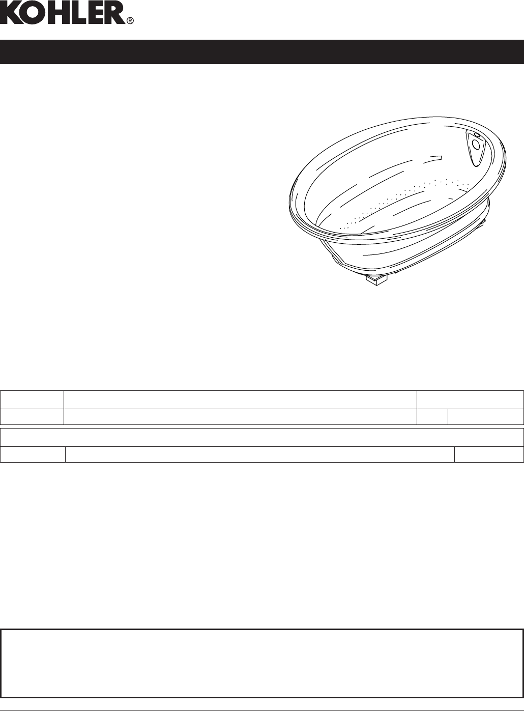 K-1162-G Drop-in bath with airjets ❑ 0 ❑ Other_____