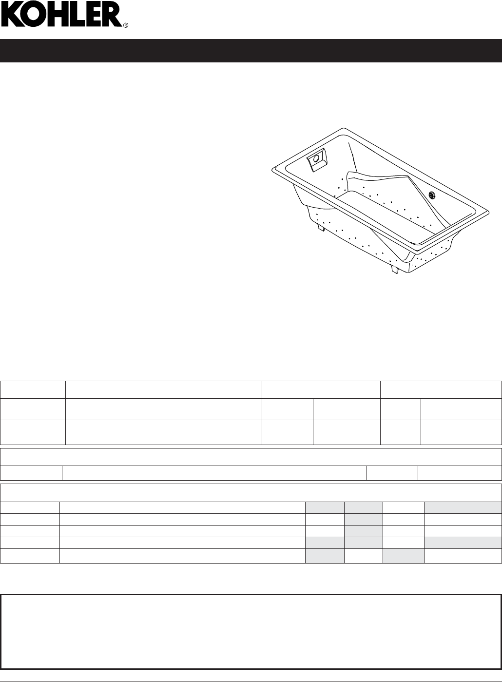 features. Bath shall be Kohler Model K-865-G____-____ or K-865-GC____-____.