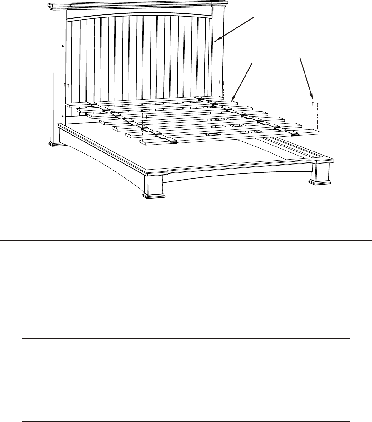 A. Unroll the slat roll and center it on the bed rails. Insert the Wood Screws (C) into the two