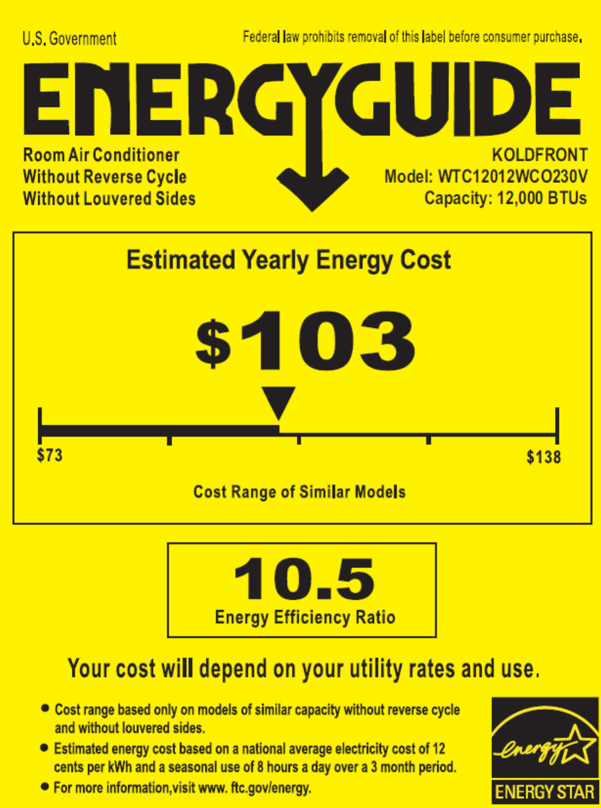 Koldfront 12,000 BTU 230 Volt Through-the-Wall Air Conditioner and Wall Sleeve with Dehumidifier and Remote Control