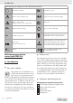Operation Setting the appropriate speed Symbols on On / off switch 1 0 Material (Drill / grinder switched off) 6 Softwood, metal 2 Plastics and low melting point materials 8 Hardwood 4 Stone, Ceramics 10 Steel Examples of appropriate tool selection Function Function Accessory Application Drilling HSS drill Drilling wood (see Fig. C) Milling Milling bits Engraving Engraving bits Polishing, derusting Metal brush 11 Various tasks, e.g.