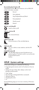 The standard readout of the LCD display q consists of the details for the relevent device, for example, "TV", the initial for the day of the week and the time of day indicator. Buttons Note: All the functions described here can, of course, only be used if they are supported by the device being controlled. /ALL OFF button. w Switch device on/off. hold down for approx. 5 seconds to switch all devices on/off. Device buttons e The device buttons are used to select the device that should be operated.