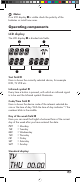 Note: If no LCD display q is visible check the polarity of the batteries or install new ones. Operating components LCD display The LCD display q is divided into fields. Text field 2! Here is shown the currently selected device, for example DVD, TV VCR etc. Infrared symbol 2@ Every time a button is pressed, with which an infrared signal is to be sent the Infrared symbol illuminates. Code/Time field 2# Here is shown the device code of the relevent selected device or the time of day.