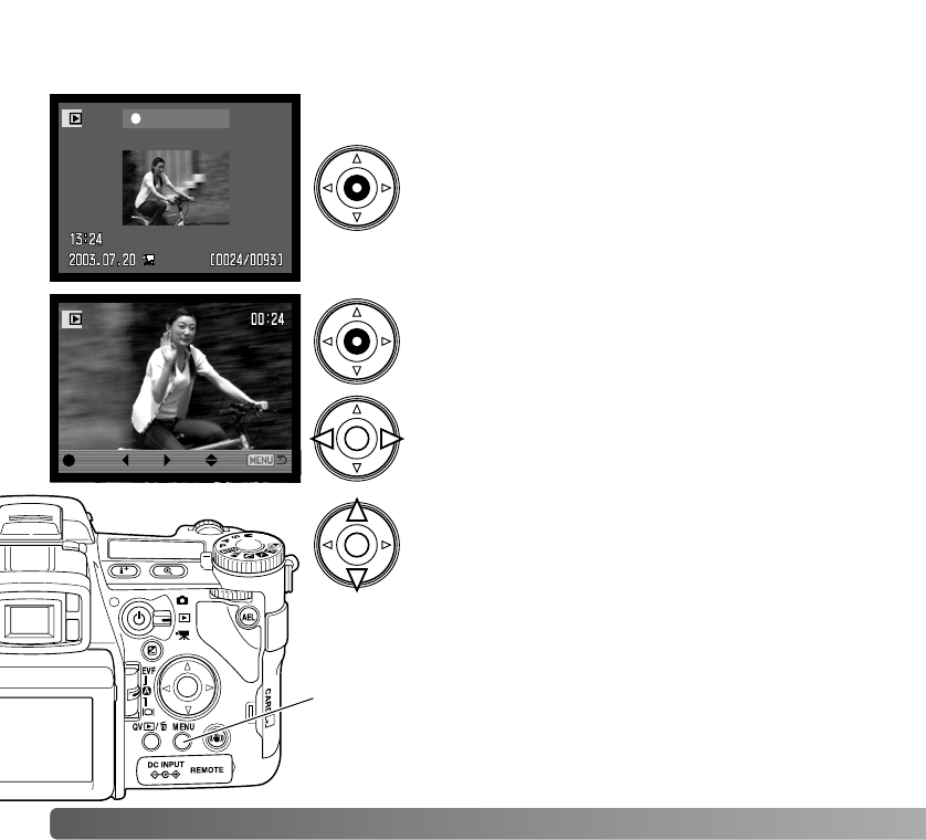 Movies can be played back on the camera. Movie files are indicated by an indicator at
