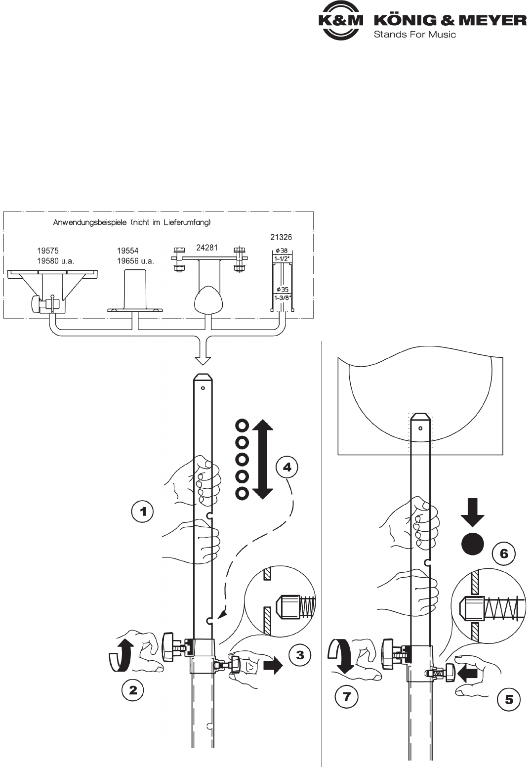 - Auszugrohr während der Höhenverstellung mit festem Griff halten und
