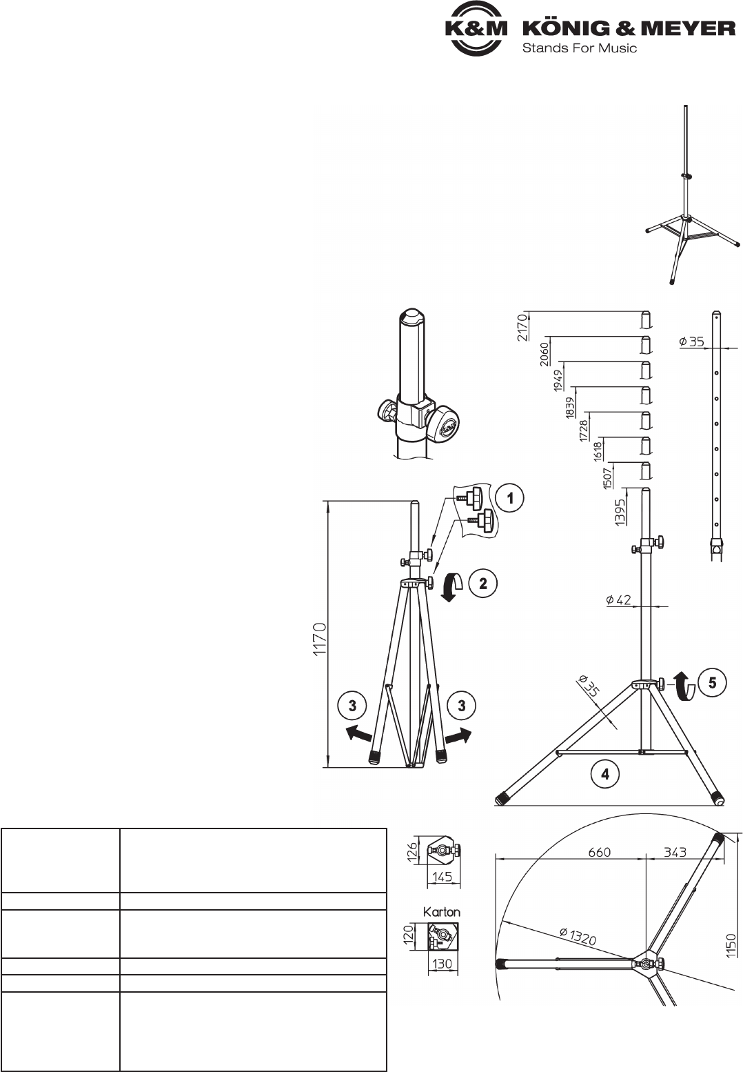- Height: min. 1395 mm / max. 2170 mm; foot circle: 1320 mm; extension ø 35 mm; weight: 4,4 kg