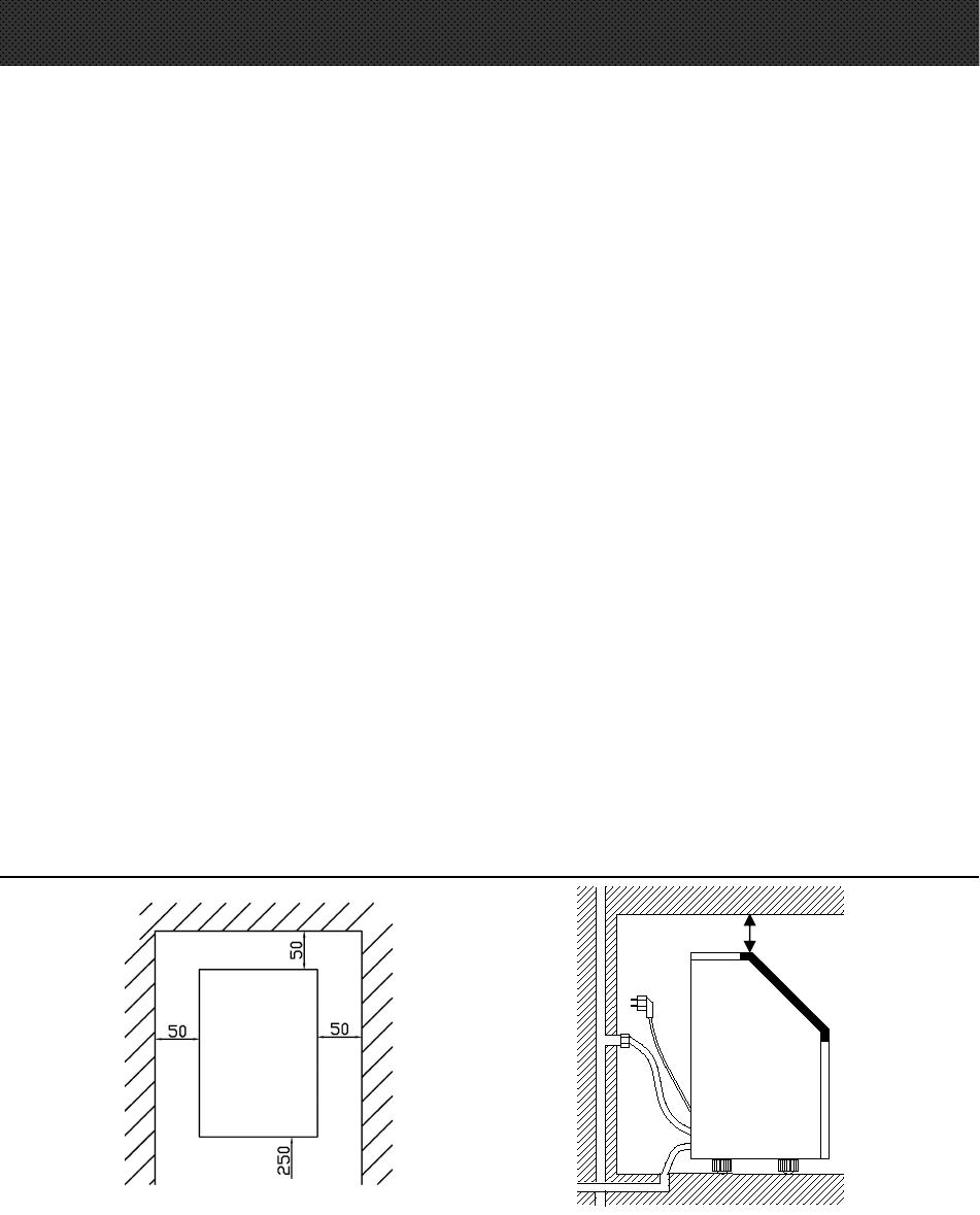 (at least 20CM free space). Allow at least 50 mm clearance at rear, and 50 mm at top and sides for