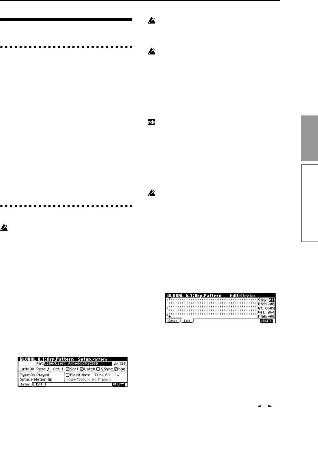 3 Select the GLOBAL 6.1: Arp.Pattern, Setup page.