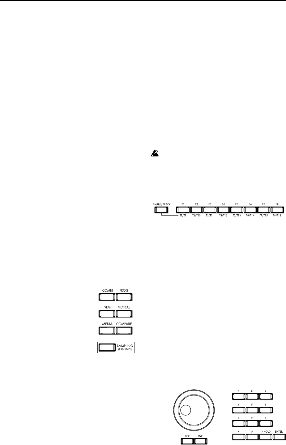 Timbre/track select [T1/T9]–[T8/T16] keys