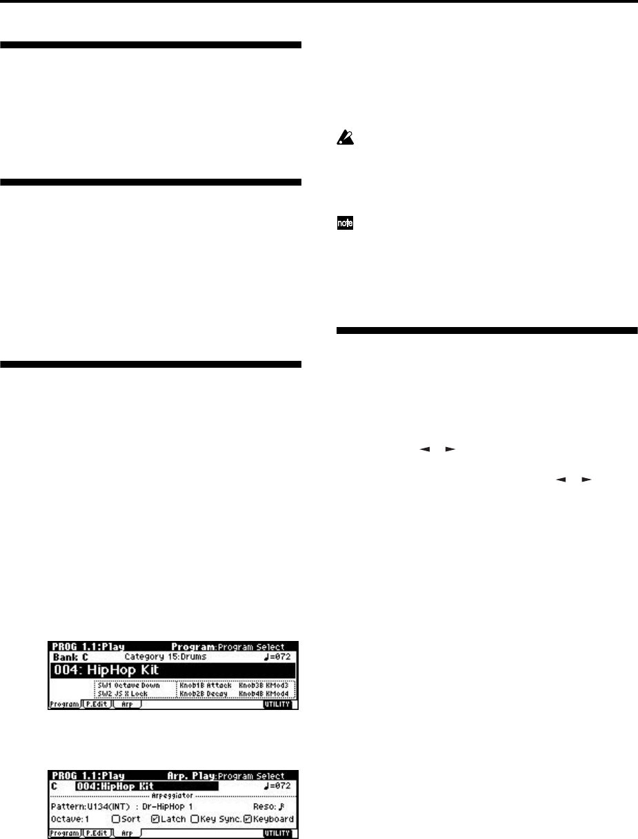 Prog), hold down the [TIMBRE/TRACK] key and