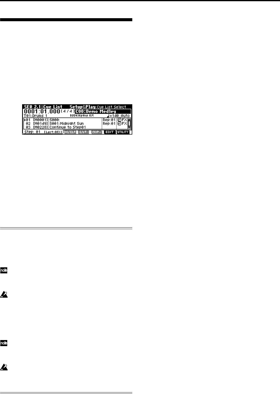 The SEQ 2.1: Cue List, Setup&Play page will appear.