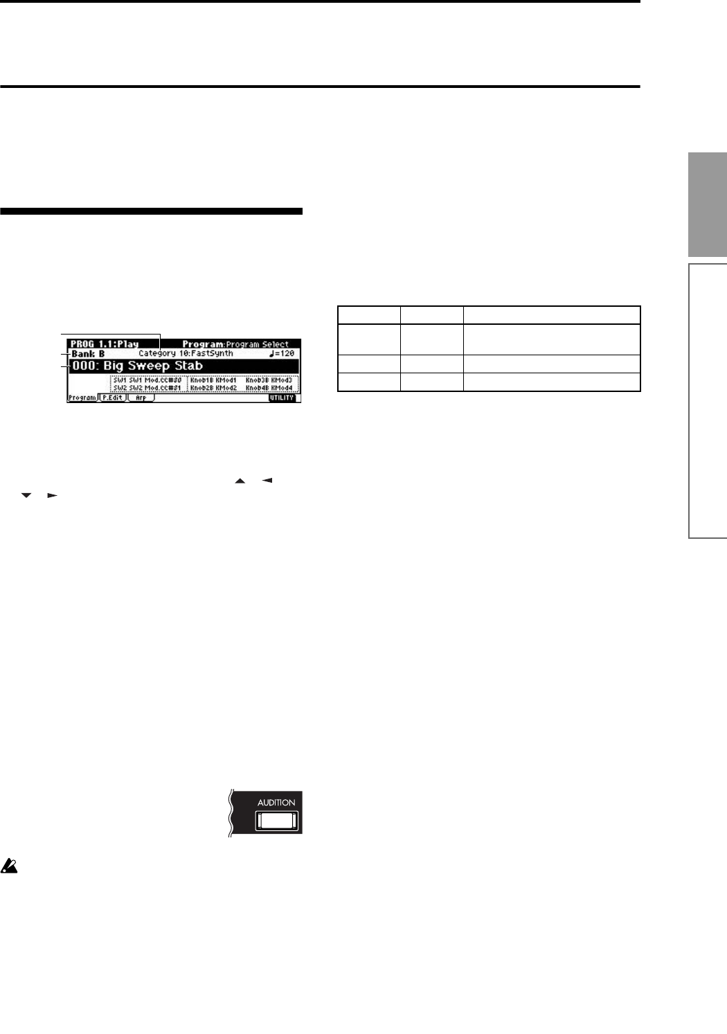 Alternatively, you can press the [AUDITION] key