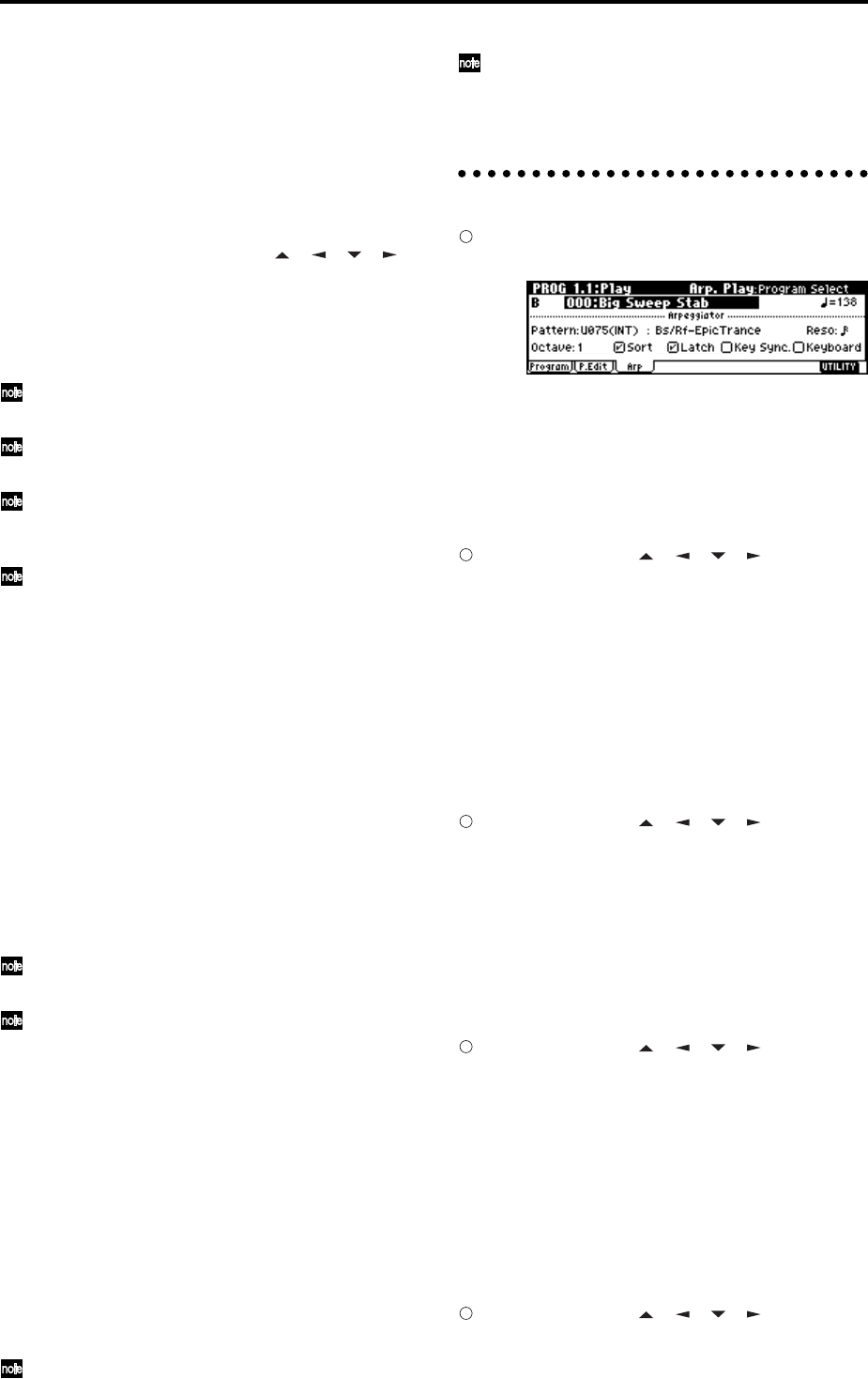 a user arpeggio pattern, use numeric keys [0]–[9] to
