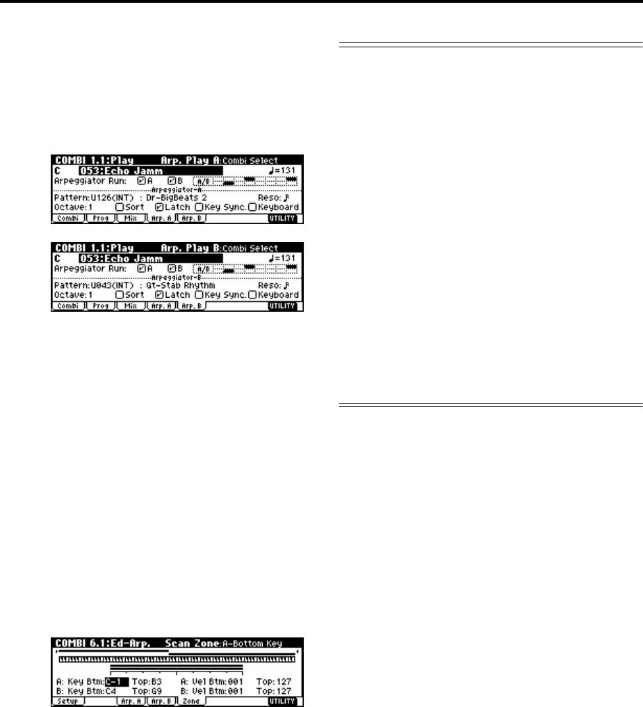 4 and 8, and arpeggiator B is assigned to timbre 2.