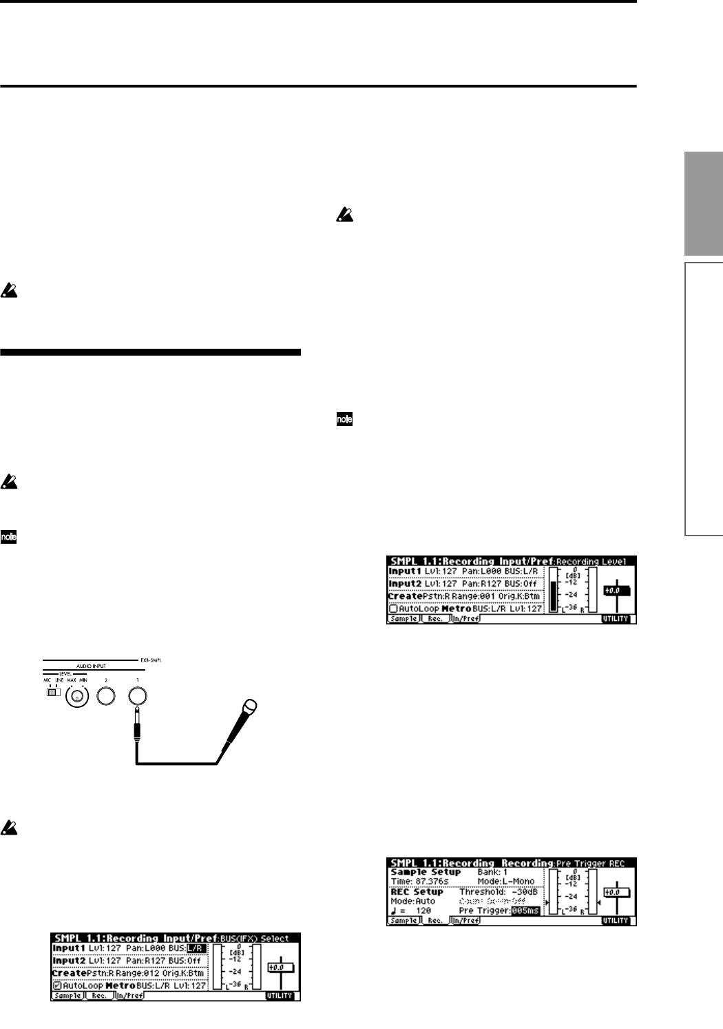 2 Press the [F2] (“Rec.”) key to select the SMPL 1.1: