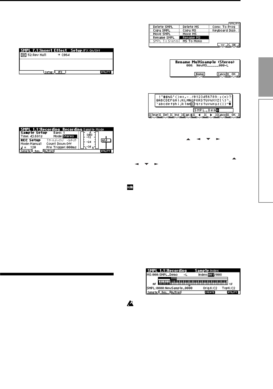1 Press the [F1] (“Sample”) key to access the SMPL