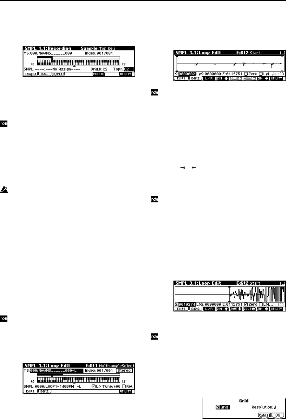1 Press the [F1] (“Sample”) key to access the SMPL