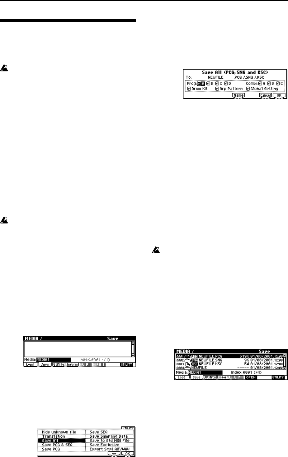 Press the [F8] (“UTILITY”) key to access the Utility