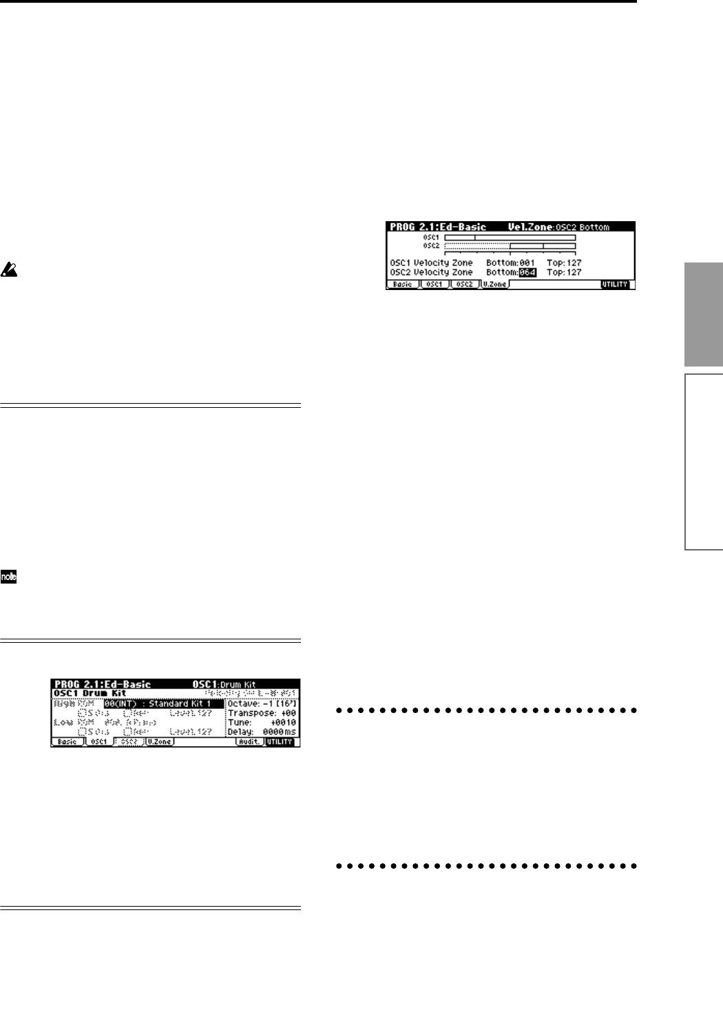 “Velocity SW L→H” to 32 and “OSC2” to 96. The