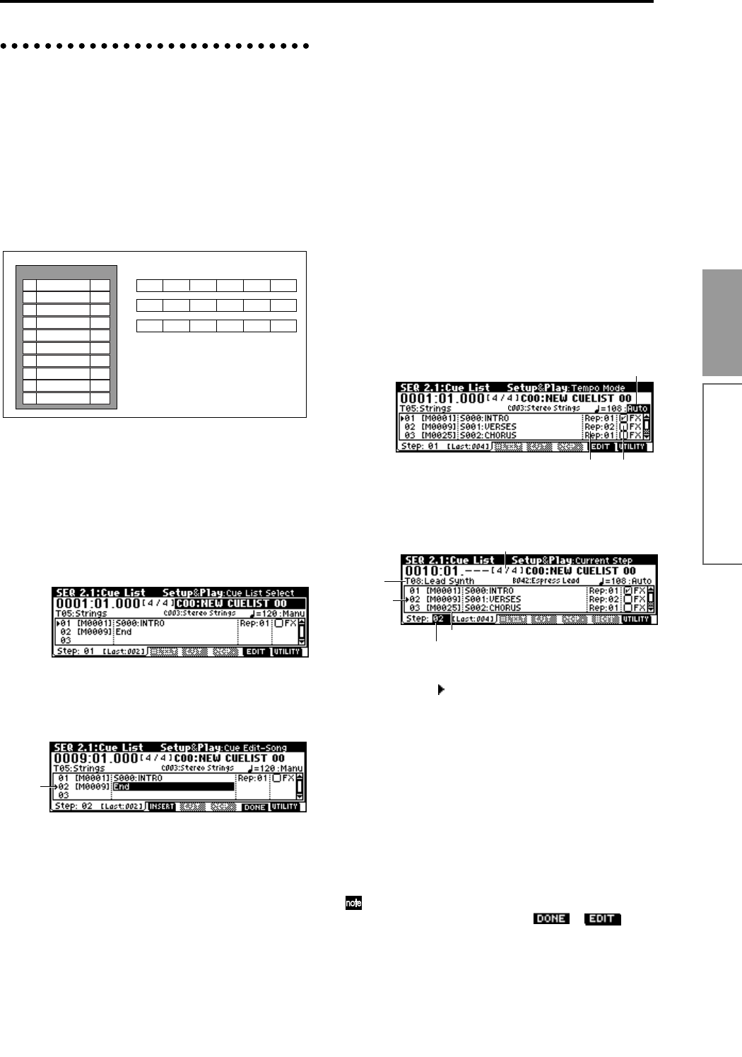 - Settings for status, MIDI channel, and playing mode 3.1: Ed–Param1