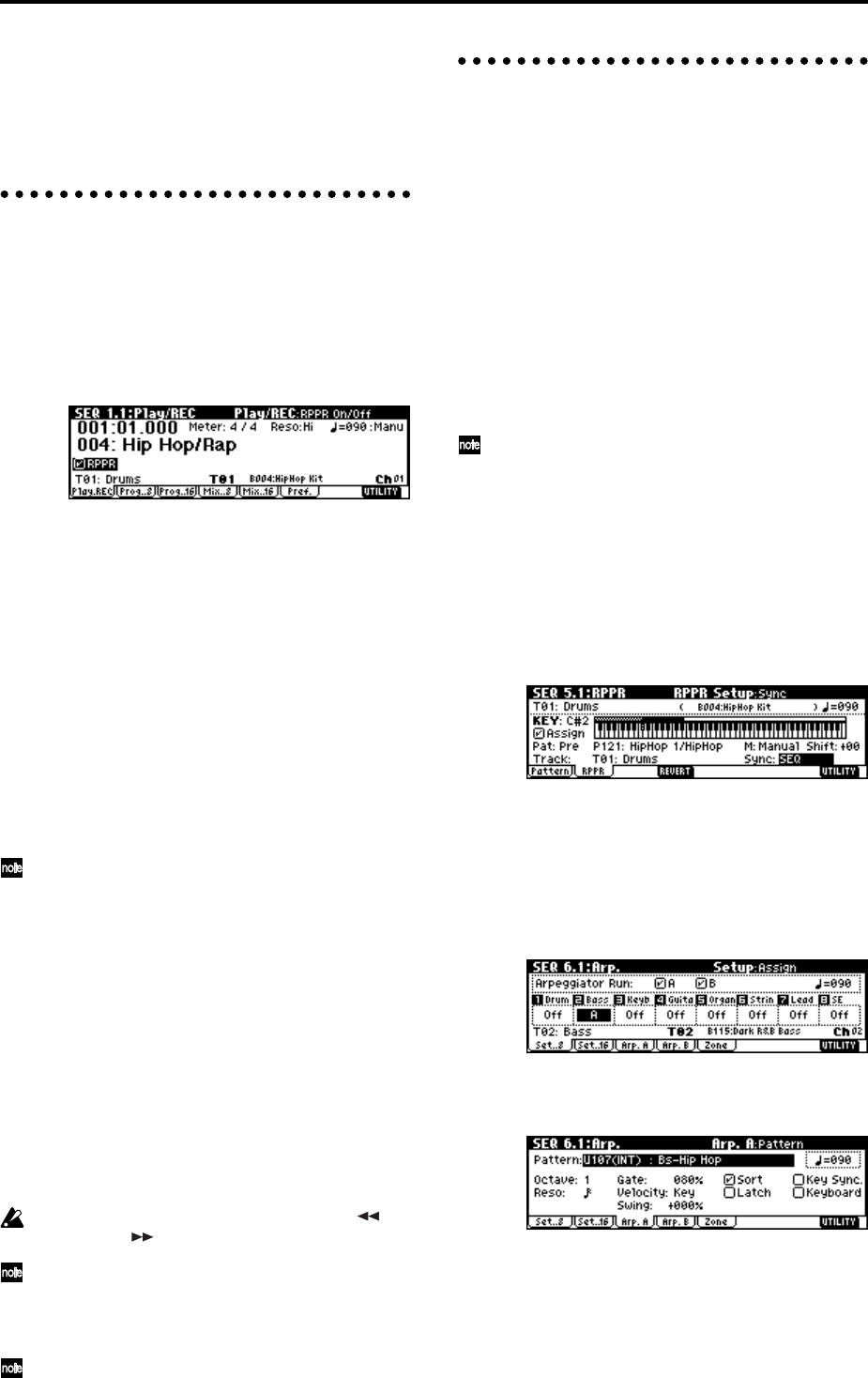 - Playing with the RPPR (Realtime Pattern Play/Recording) function